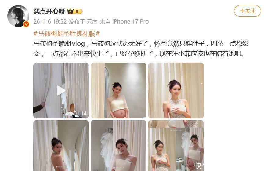1月6日,汪小菲妻子马筱梅在社交平台晒出的一则孕晚期日常vlog,可谓瞬间点燃了网友的关注。视频里,她不仅大方展示约八个月的明显孕肚,温柔笑容中满是对新生命的期待,更记录了挑选礼服的行程。其纤细四肢与隆起腹部的鲜明对比,直接让评论区炸开了锅:“这状态绝了,怀孕竟然只胖肚子!”“除了肚子,身上没多长一点肉,是真·辣妈!”