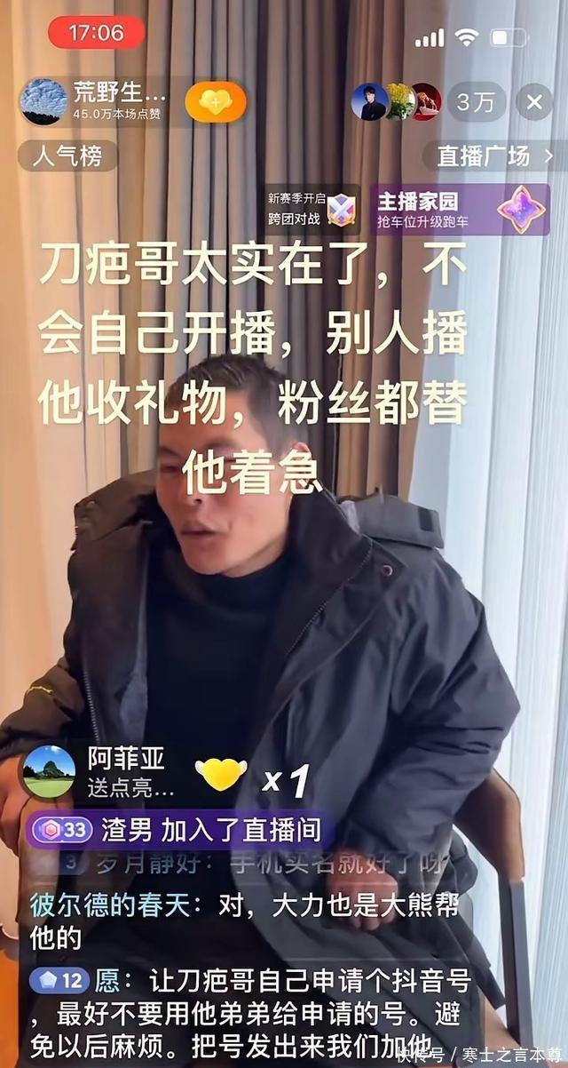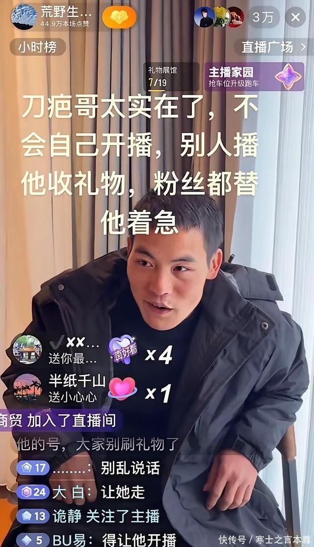 刀疤哥的圈粉密码,藏在他的真实与实力里 。论外形,他的侧颜被粉丝直呼“杀疯了”,洗干净脸后更是帅气十足;论性格,他实在得让人忍不住点赞—— 别人直播时他默默接受礼物,自己却不懂主动开播;论毅力, 他在七星山坚持了41天,因为天气太冷全程没洗澡,脸也是洗得断断续续,大部分时间都顶着灰头土脸的模样。