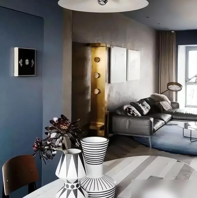 他家客厅那面巨无霸水泥墙,没刷漆没贴砖,就留着原始的颗粒感,却配了张线条超干净的灰色绒面沙发——软乎乎的布料蹭着硬邦邦的水泥墙,瞬间把「冷感」揉成了「冷静的质感」;再往角落摆幅抽象画,色块跳脱但不扎眼,像给水泥墙戴了件「艺术首饰」,谁看了不说句「这才是会装的」?