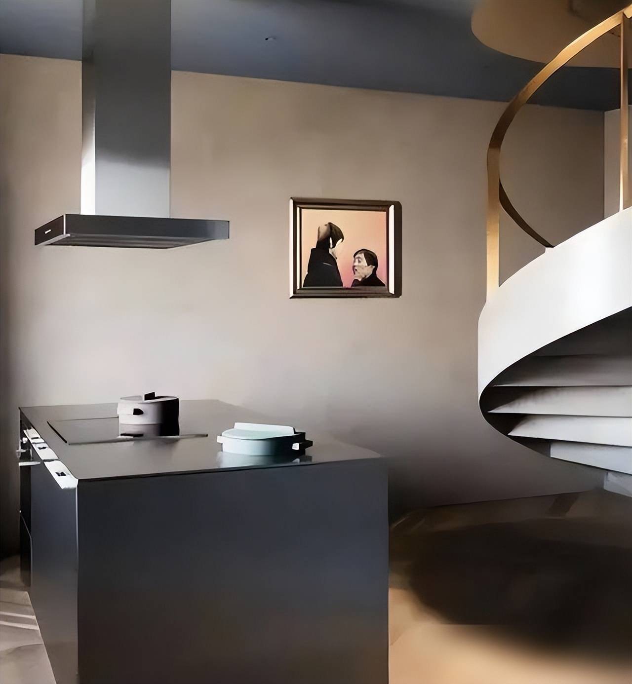 比如他的卧室,墙还是水泥的,但铺了张奶黄色的针织床单,堆了几个浅咖色的软抱枕,暖乎乎的布料贴在冷硬的墙面上,像给房间盖了层「隐形的小被子」;连厨房都没放过细节,水泥墙旁边加了点金属线条的橱柜把手,冷硬里藏着点「亮晶晶的小心机」,瞬间把「做饭的烟火气」和「高级感」揉到一起了。