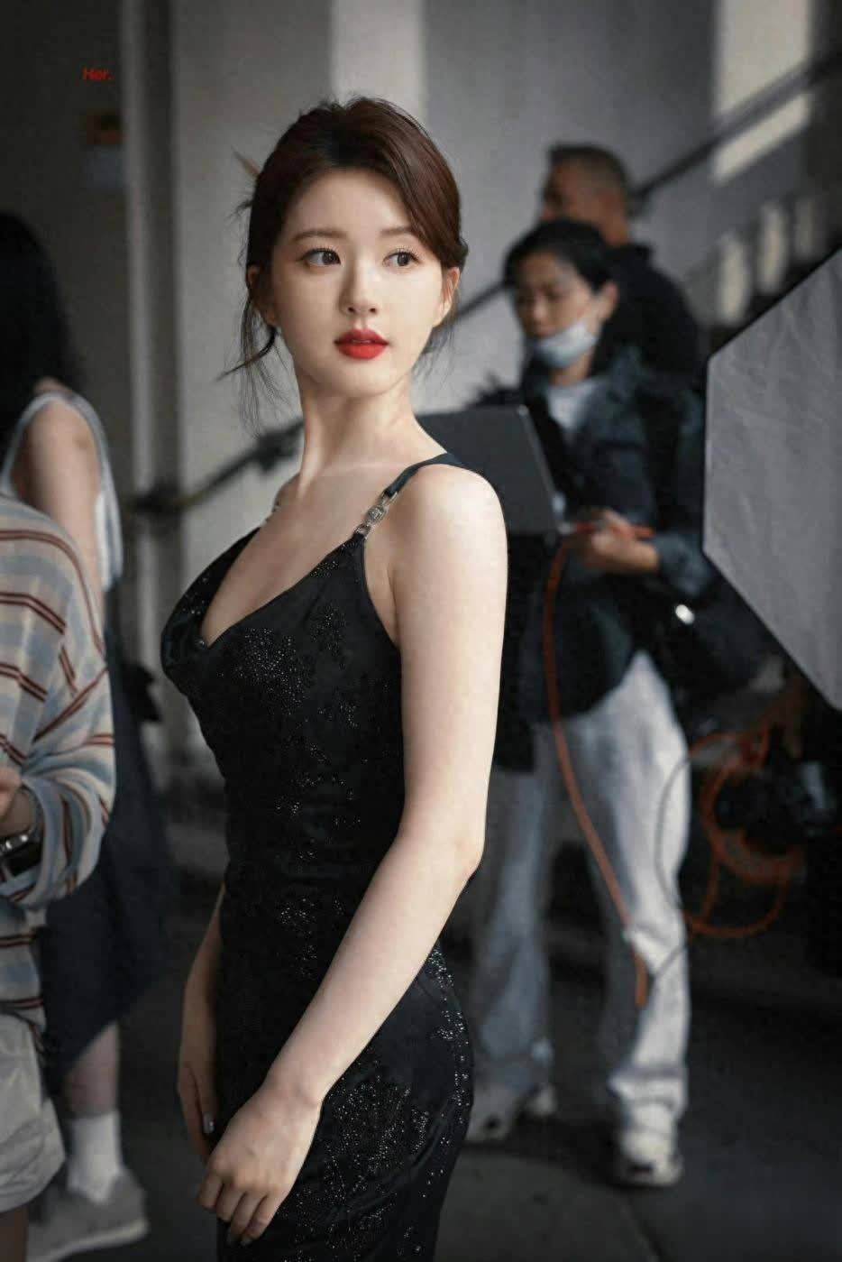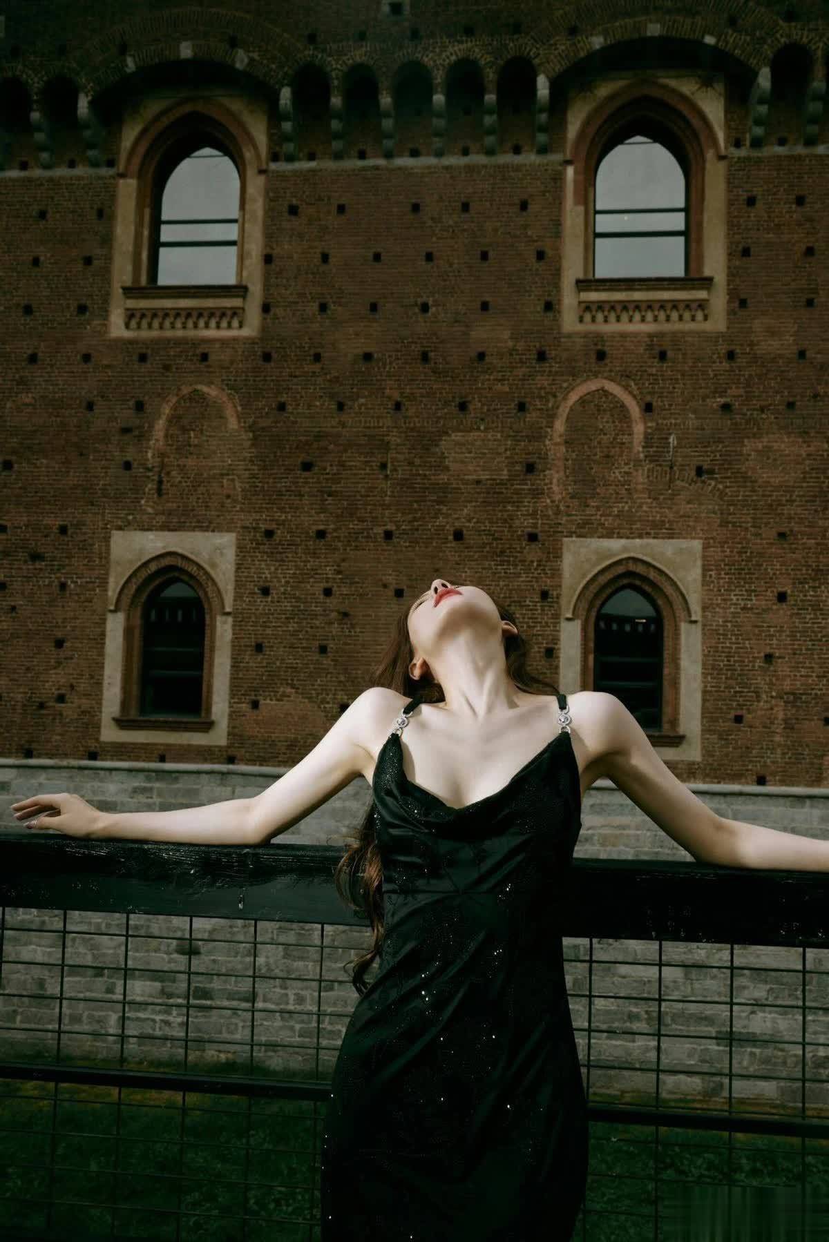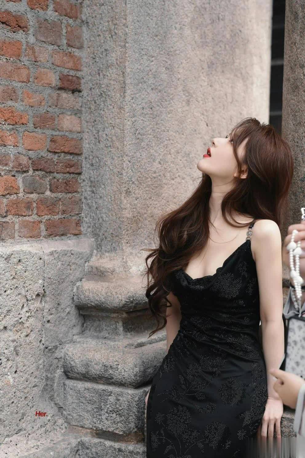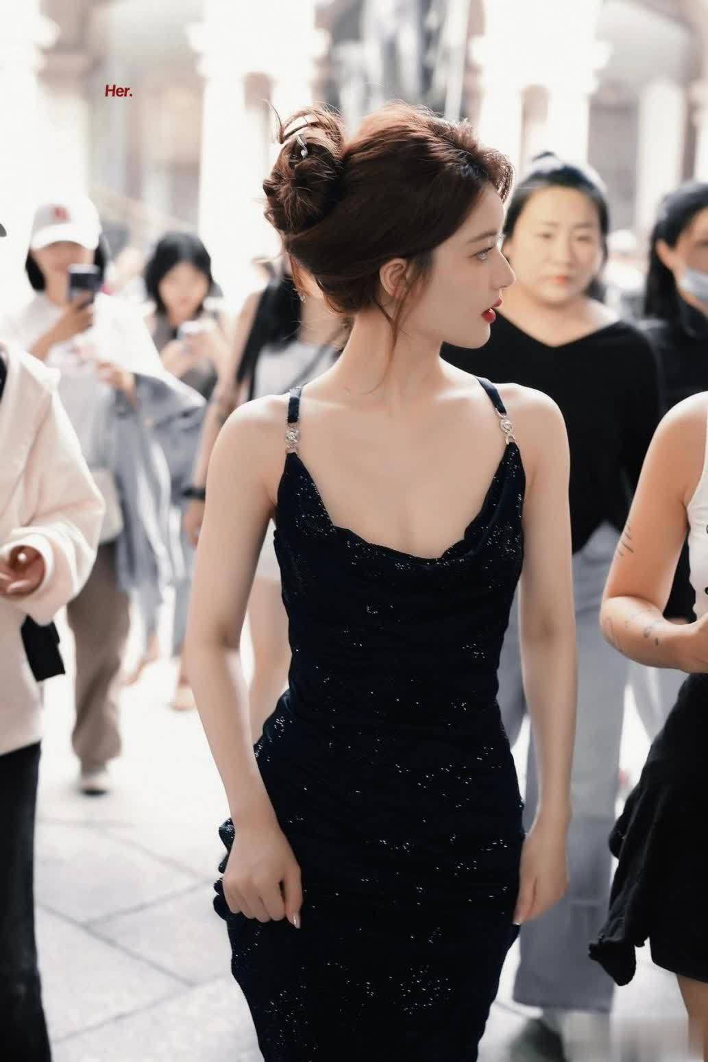 身上穿了一件黑色吊带裙,细细的肩带太吸睛了,分分钟将手臂、肩膀肌肤露了出来。吊带裙在炎热的夏季还是很流行的,因为其露肤度高,如果整体版型再宽松些,身体肌肤会很凉爽,因此是酷热季节很受欢迎的单品。细肩带的出现有好有坏,好的一面便是彰显身材,坏的一面也很容易想到,溜肩、窄肩、拜拜肉会暴露出来。这也是为何现在部分女生执着于直角肩,就是为了穿露肩裙时好看。